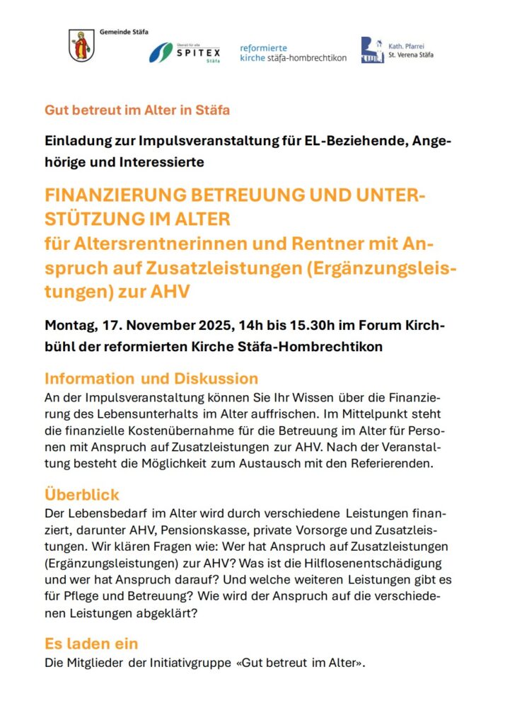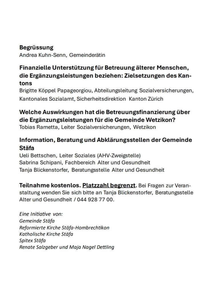 Benefiz-Vorstellung der Niklausbühne Hombrechtikon für Stäfner Seniorinnen und Senioren Der Verein für Altersfragen Stäfa organisiert in Zusammenarbeit mit der Niklausbühne Hombrechtikon eine Benefizvorstellung für Stäfner Seniorinnen und Senioren am Mittwoch,…